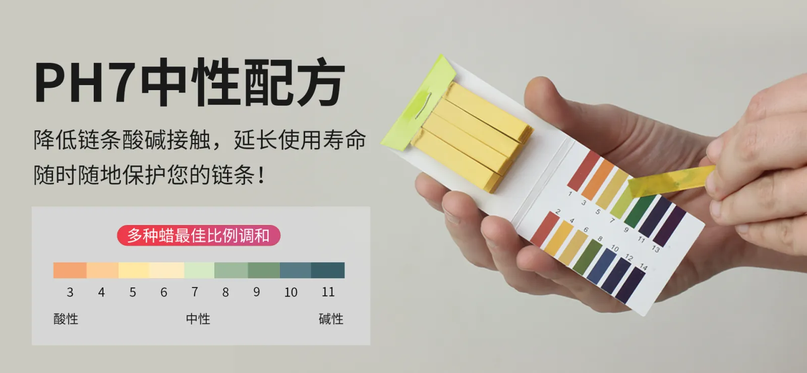 ★ 干式中性配方,灰尘不易附着,延长使用链条寿命。