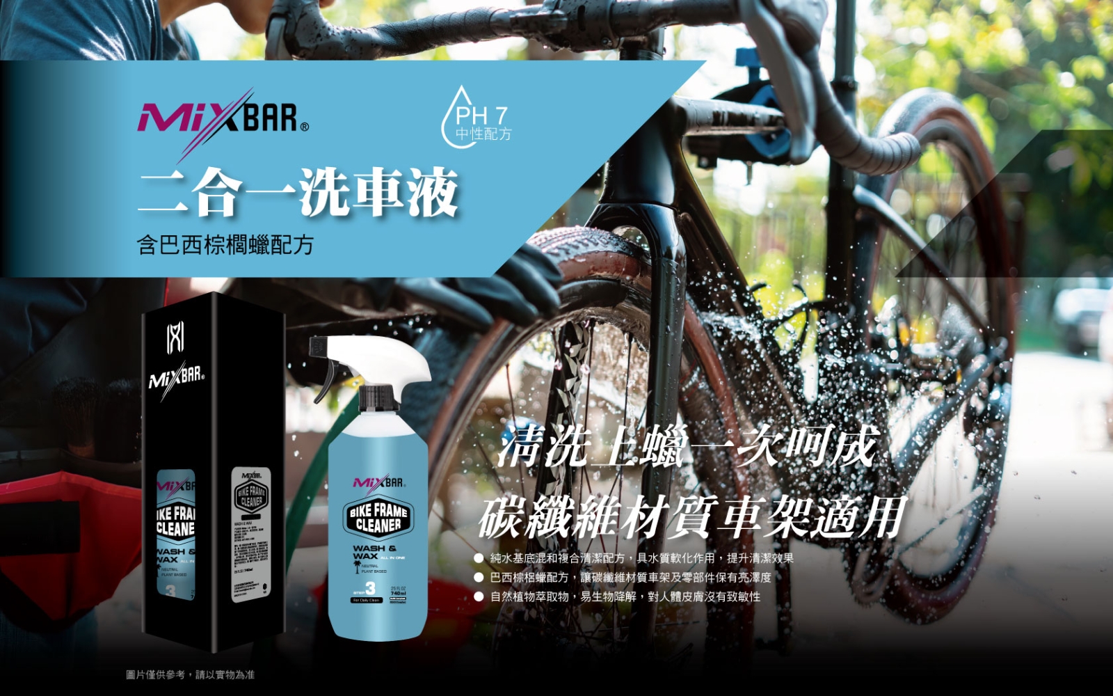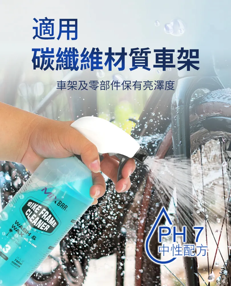 ● 巴西棕梠蠟配方,讓碳纖維材質車架及零部件保有亮澤度